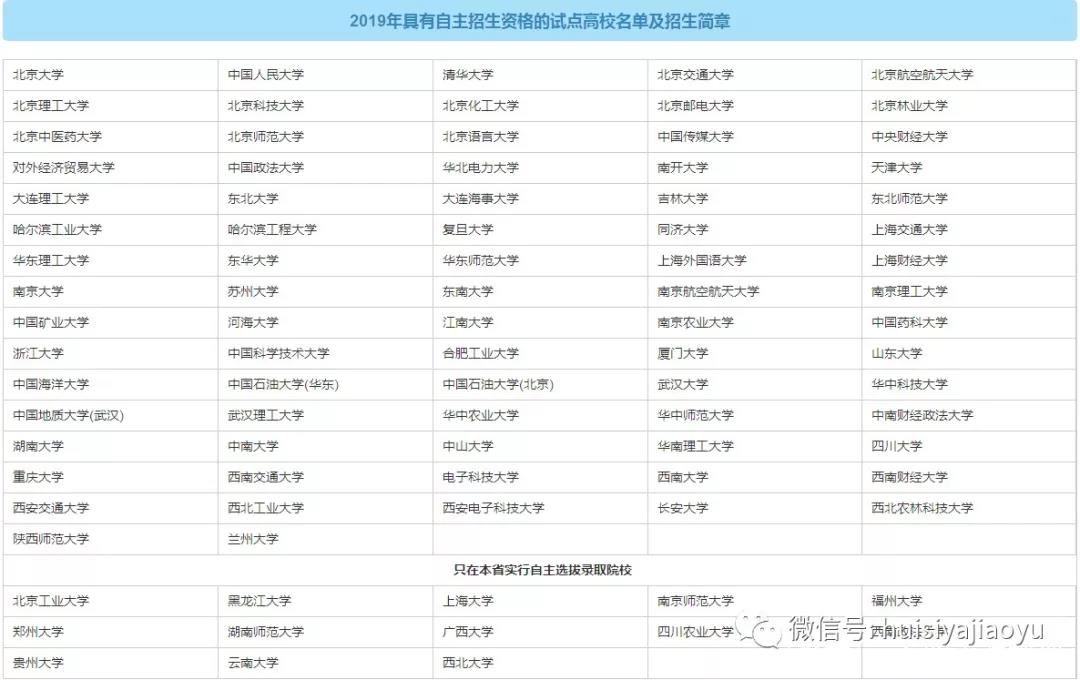 3月6日,陽光高考網(wǎng)上線了2019年自主招生報(bào)考指南專題,該頁面中也公布了2019年自主招生院校名單。2019年同樣有90所高校通過自主招生進(jìn)行招生。